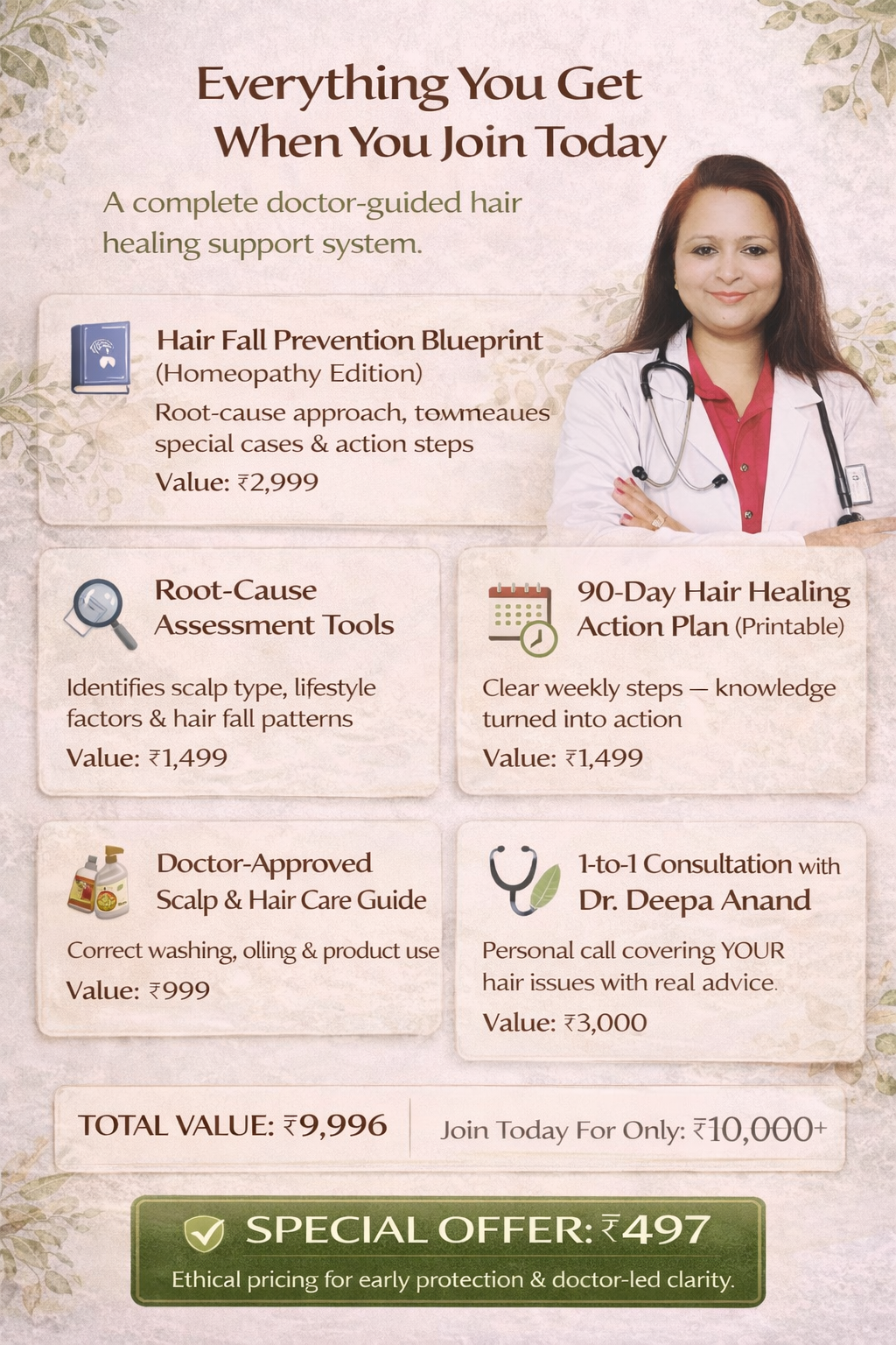 This is exactly why I created "Hair Fall Prevention Blueprint – Homoeopathy Edition."